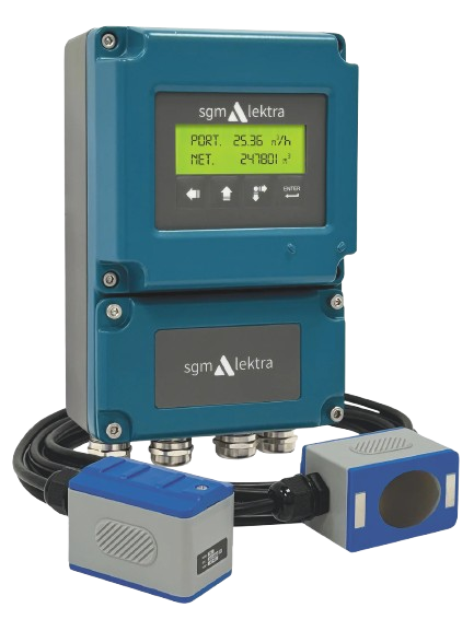 Los caudalímetros SGM-101F funcionan según el principio de diferencia de tiempo de tránsito de pulsos ultrasónicos.