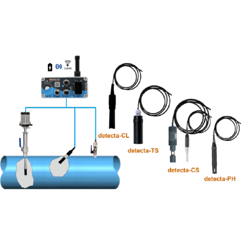 - Salidas 4-20 mA, Modbus, RS485, compatibles con SCADA. Cables autoportantes hasta 400 m y accesorios de montaje.