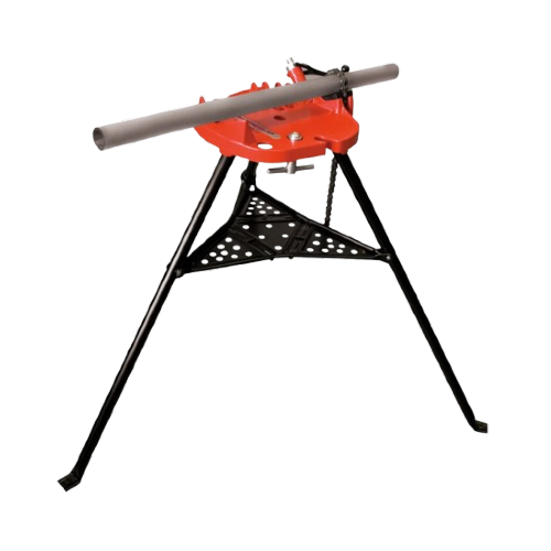 En el banco de trabajo universal de trípode puede depositar una gran variedad de herramientas y tubos acodados de hasta 7/8″. La capacidad de plegado del trípode hace que sea muy adecuado para moverlo por el sitio de la obra.